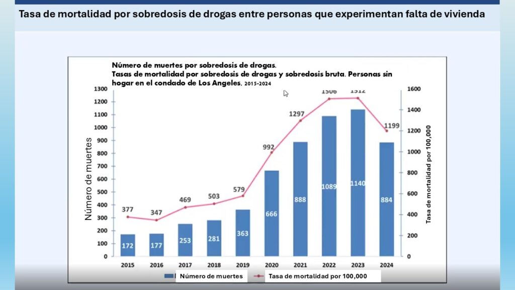 Y dado que el condado de Los Ángeles cuenta con un gran número de residentes latinos, este grupo constituye el mayor contingente en términos de cifras absolutas de residentes que sufren una sobredosis.